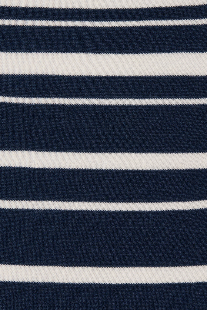 A late summer-inspired maxi dress with a halter neckline and back neck ties, adjustable to tie to your liking, and a folded band detail over the bust. It is lightly fitted through the upper body before falling into a relaxed skirt that grazes the ankles. Designed from a soft blend of cotton and nylon in a Scandinavian navy and white stripe, style with a simple sandal or heel for your next occasion.