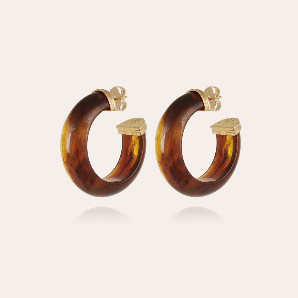 Acetate hoop earrings delicately hand-polished. The ends are gold plated.